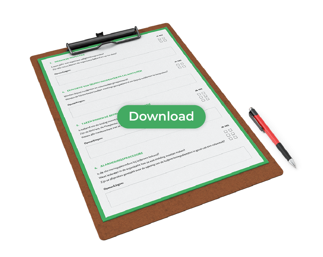 De veiligheid checklist is onderdeel van een complete BHV scan. De BHV scan is een soort mini RI&E of een snelle veiligheid APK. Een eenvoudige methode om te achterhalen hoe het met de veiligheid binnen jouw organisatie gesteld is. Door eerst de veiligheid checklist door te nemen en in te vullen, krijg je inzicht op welke onderdelen het met de veiligheid binnen jouw organisatie goed gesteld is. Maar wellicht ook waar nog iets ontbreekt. We hopen uiteraard dat je tot de conclusie komt dat alles tot in de puntjes geregeld.