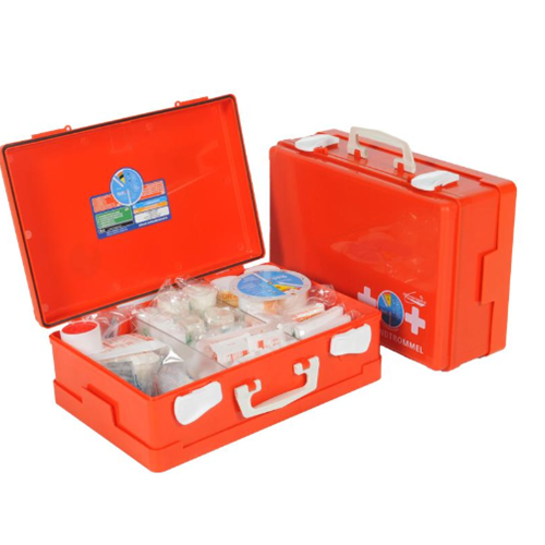 Deze verbandkoffer bevat een basis voor de meest voorkomende eerste hulp handelingen.